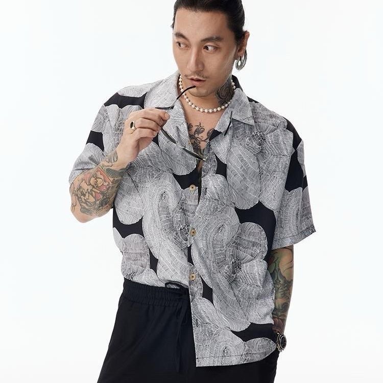Retro casual vacation Hawaiian trendy shirt, short-sleeved loose Cuban shirt unisex men and women