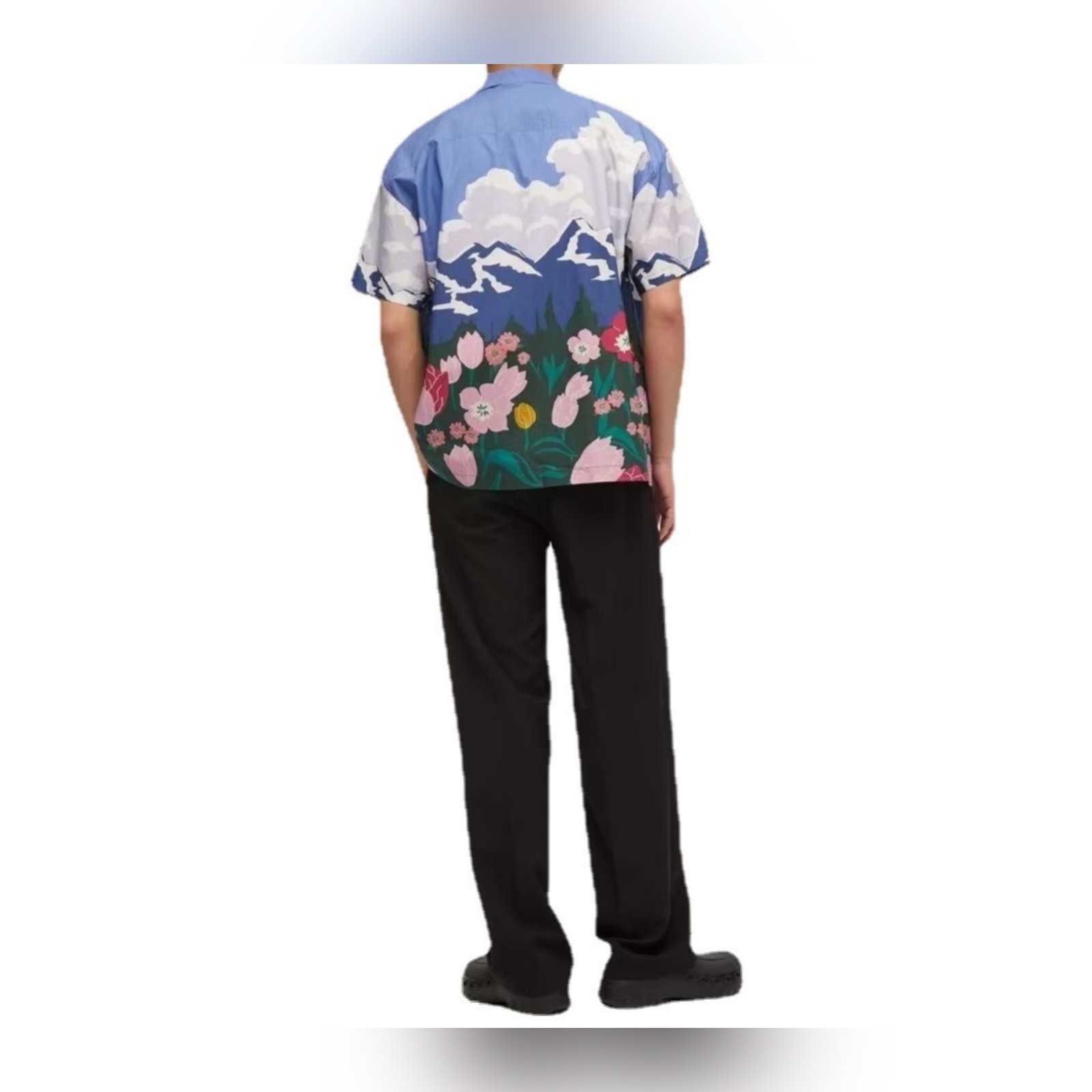 Snow Clouds and mountain flower printed loose casual beach shirt