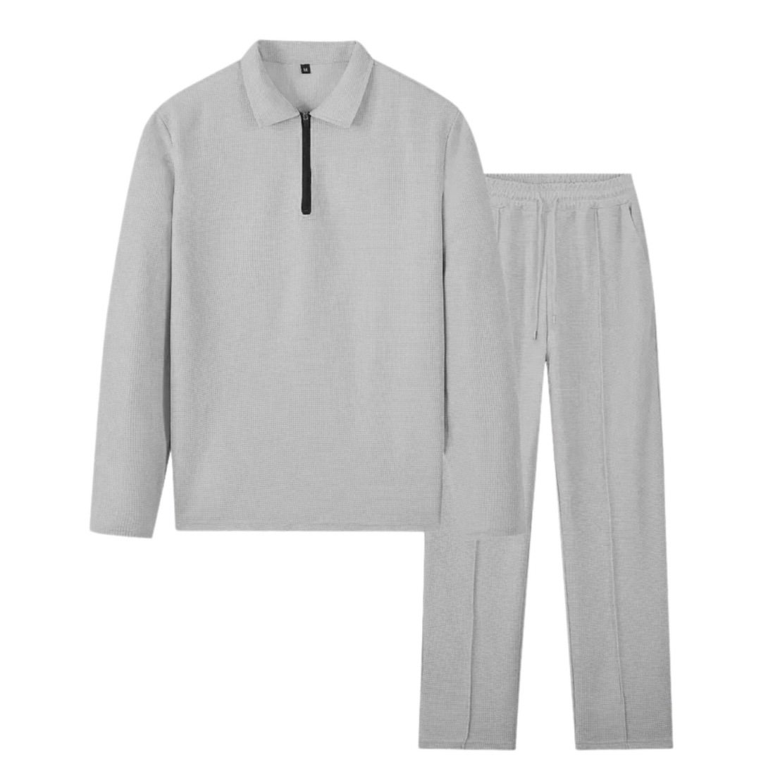 men’s waffle lapel zipper long sleeve two-Piece casual suit
